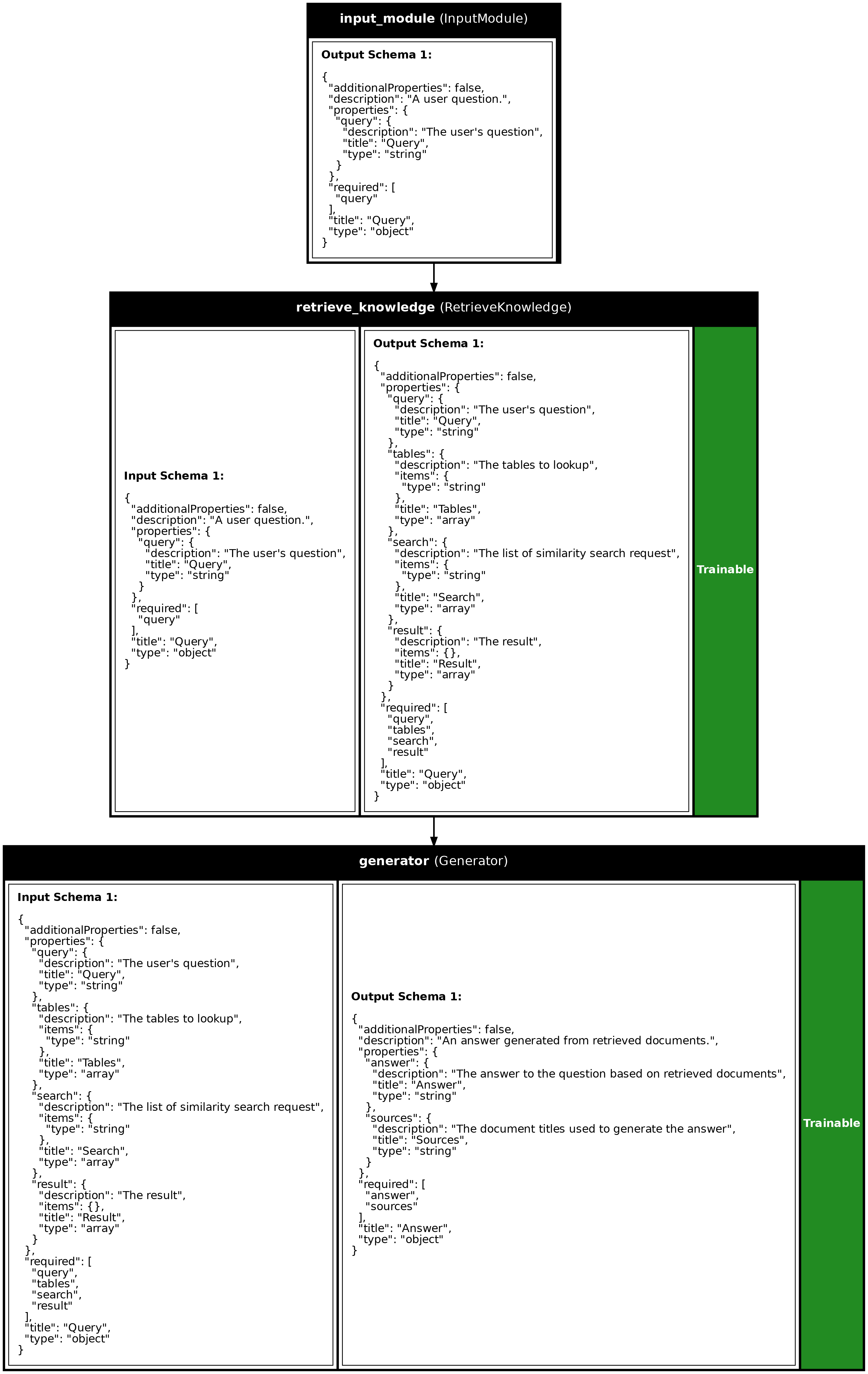 - Trainable: The retrieval and generation modules can be optimized using Synalinks training.